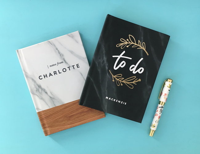 Work gets a playful twist with cheery to-do journals for your fellow #bossbabes. Marble designs with wood accents will result in a 100% productivity increase.