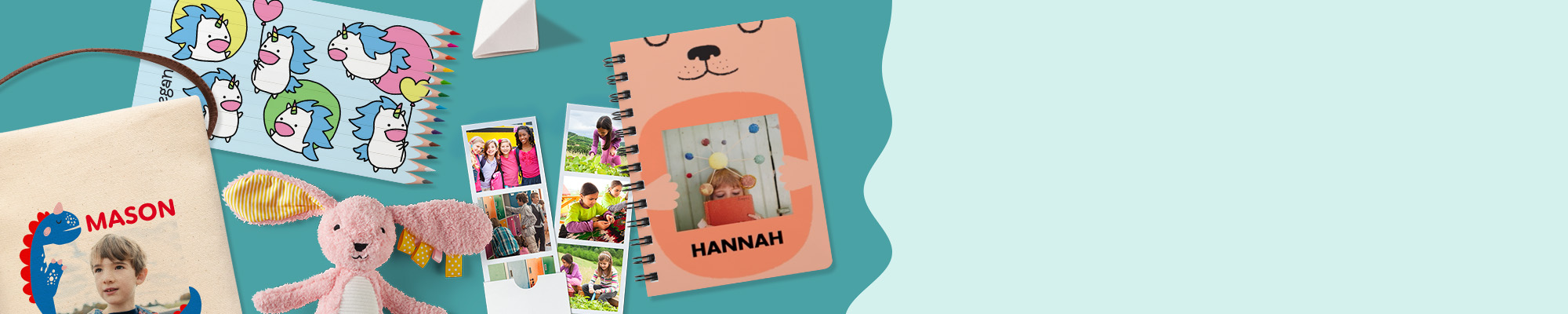 Customize back-to-school goodies like a stainless steel water bottle with their name and photo that they can take with them to school or soccer practice. Design a wall calendar featuring pictures of their besties so they can stay on top of their homework. A great gift for kids is a custom photo book to collect favorite grade school memories. Personalized placemats are a fun and helpful way your preschooler can learn the alphabet while eating breakfast. You can even design custom tote bags for trick-or-treating or for hauling their ballet slippers or art class supplies.